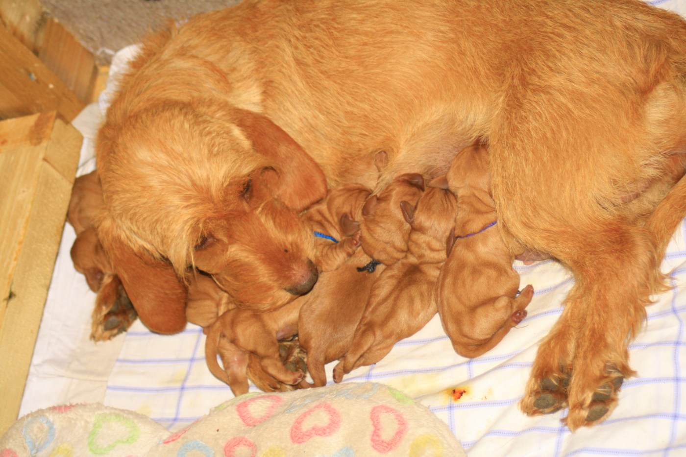 Gleich darauffolgend kam unser erster Rüde um 14:47. Die dritte Hündin folgte um 15:26 Uhr nach. Da waren sie dann schon zu viert.