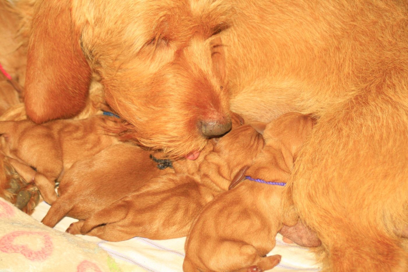 Beim ersten Wurf einer Hündin, weiß man vorher nie, wie diese sich anstellen wird. Jalinaar kümmert sich aber mit einer Hingabe um die Welpen, dass es wirklich schön ist dabei zuzusehen. Mit Ehrfurcht schaut man in die Wurfbox und überlässt eigentlich alles dem Urinstinkt der Mutter.