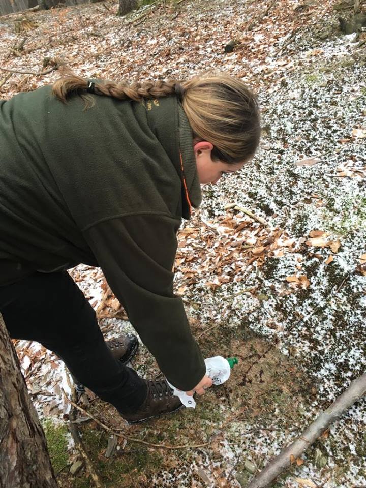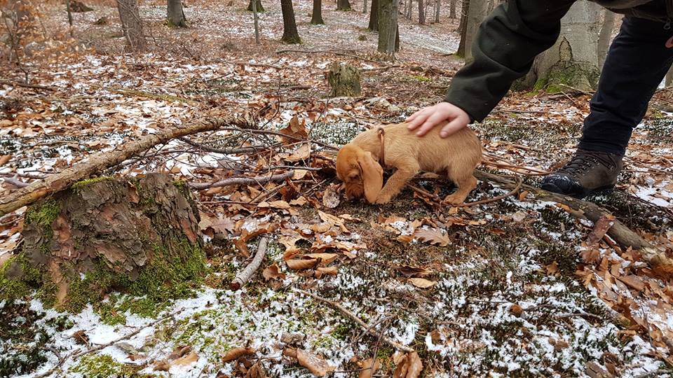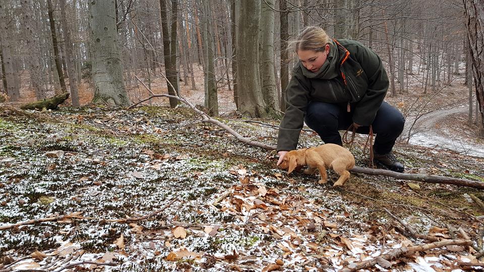 Elle (11. Woche) zuerst am Wundbett einarbeiten, mit kurzer Fährte dran … eine vielversprechende Nase die kleine Hexe, immer voll drauf.