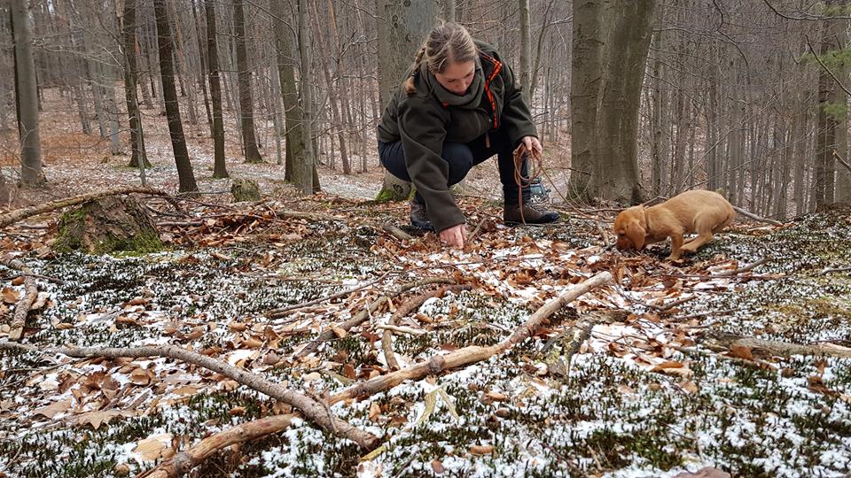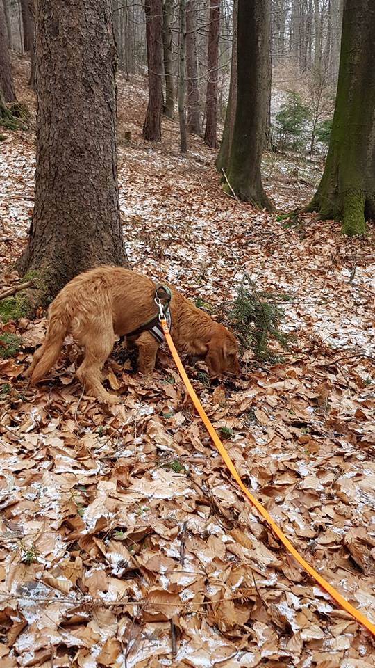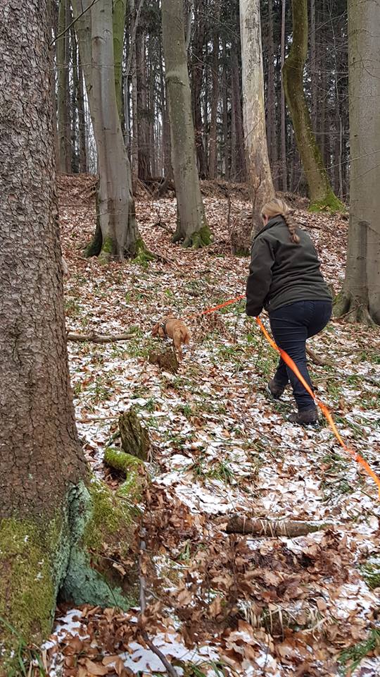 Fährtenarbeit mit unseren jungen Mädels Elle und Oriane.