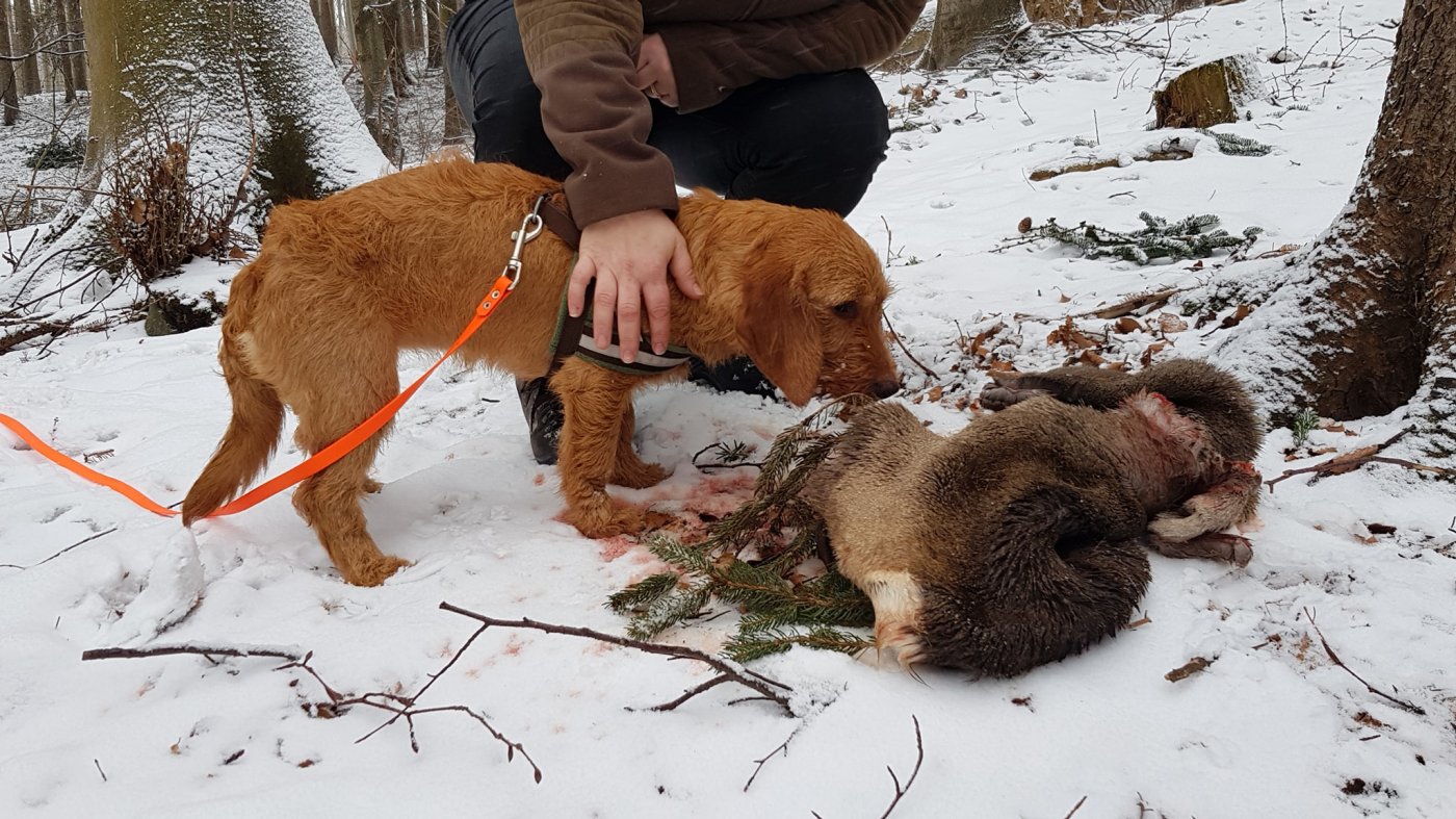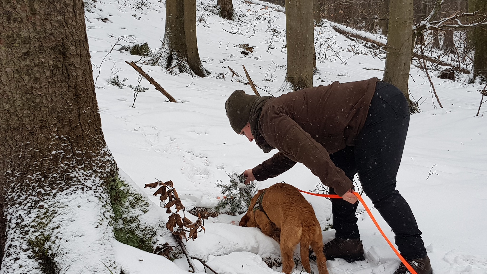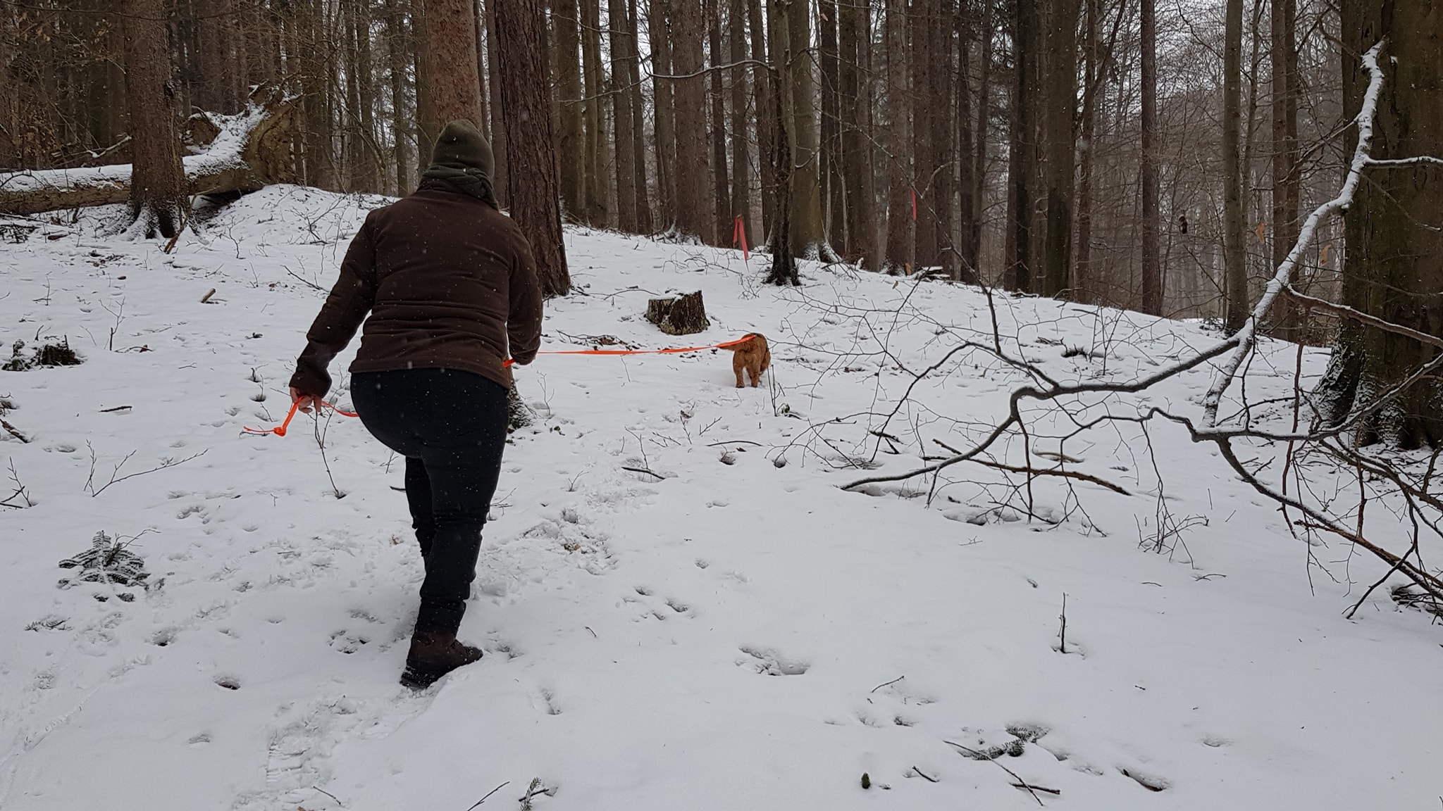 Unsere jungen Mädels Claire, Oriane und Elle beim Üben auf der künstlichen Wundfährte … von 30 Schritten bis zu 300 Schritten alles dabei … fein in Übung bleiben.