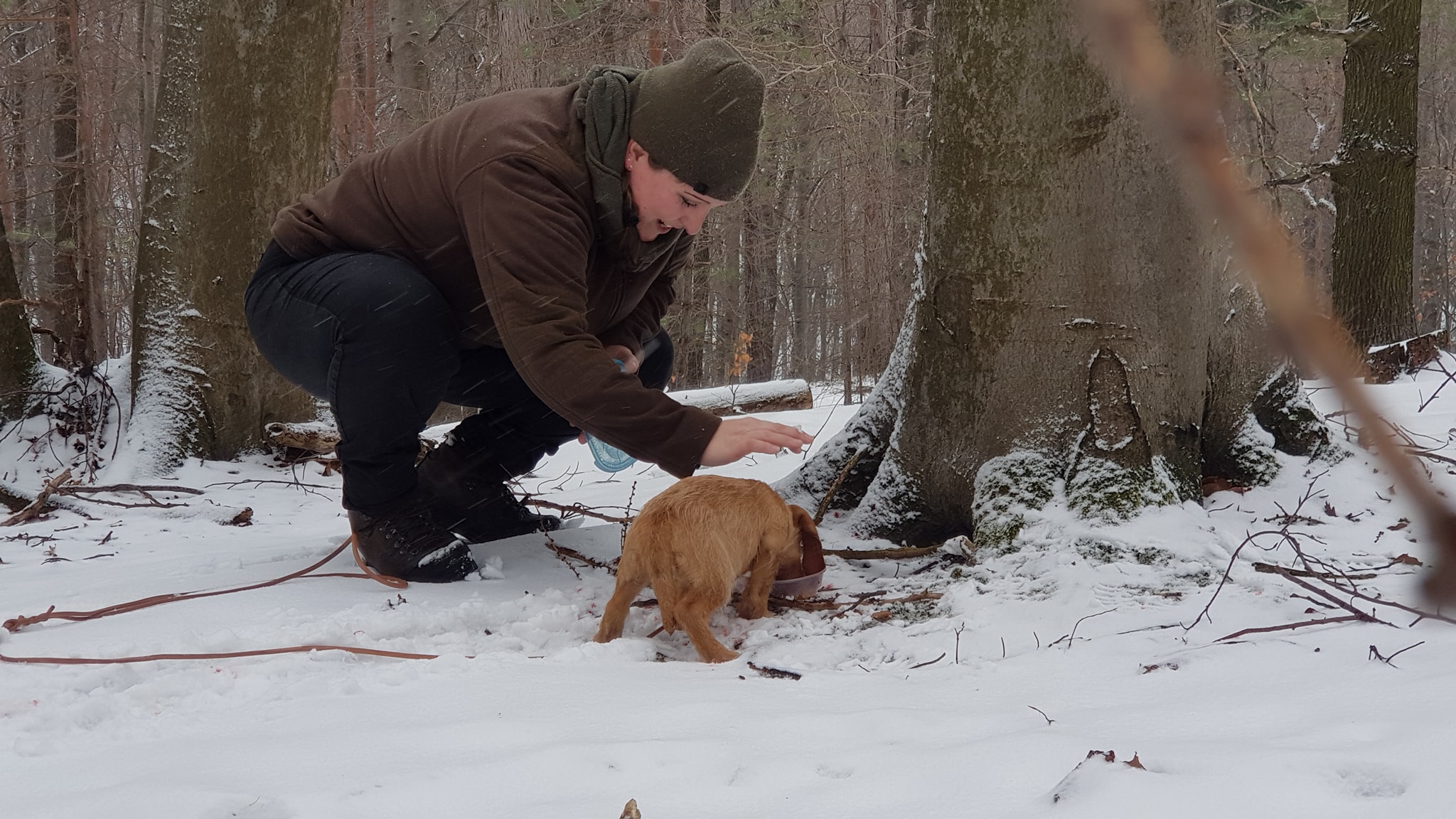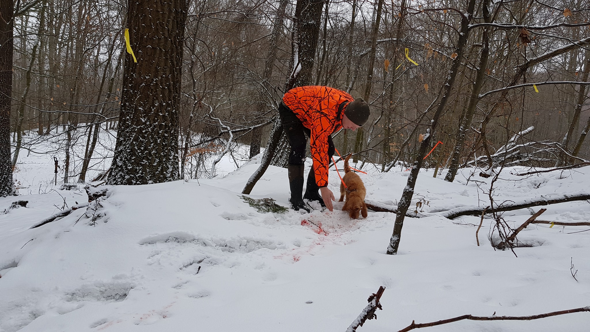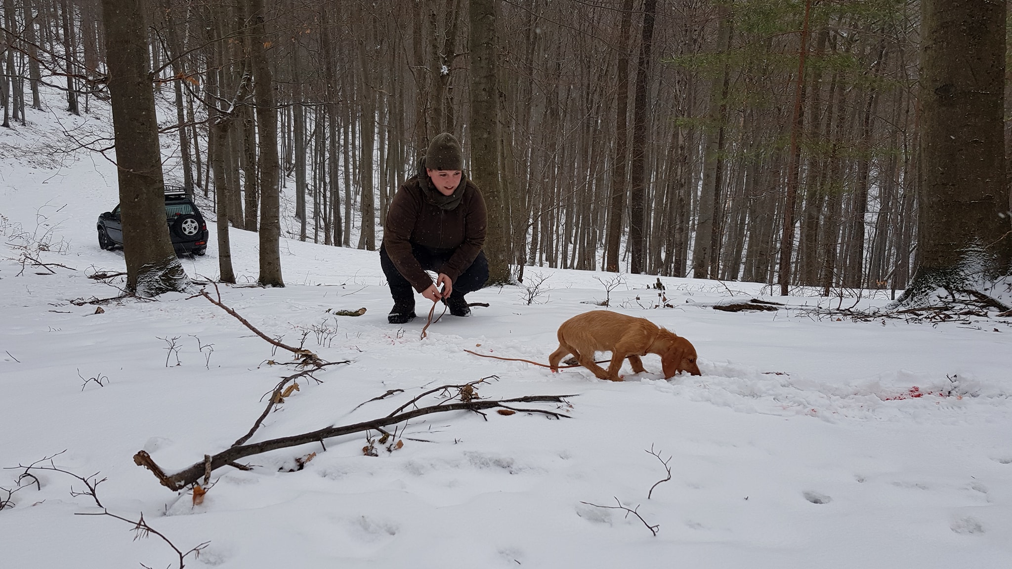 Unsere jungen Mädels Claire, Oriane und Elle beim Üben auf der künstlichen Wundfährte … von 30 Schritten bis zu 300 Schritten alles dabei … fein in Übung bleiben.