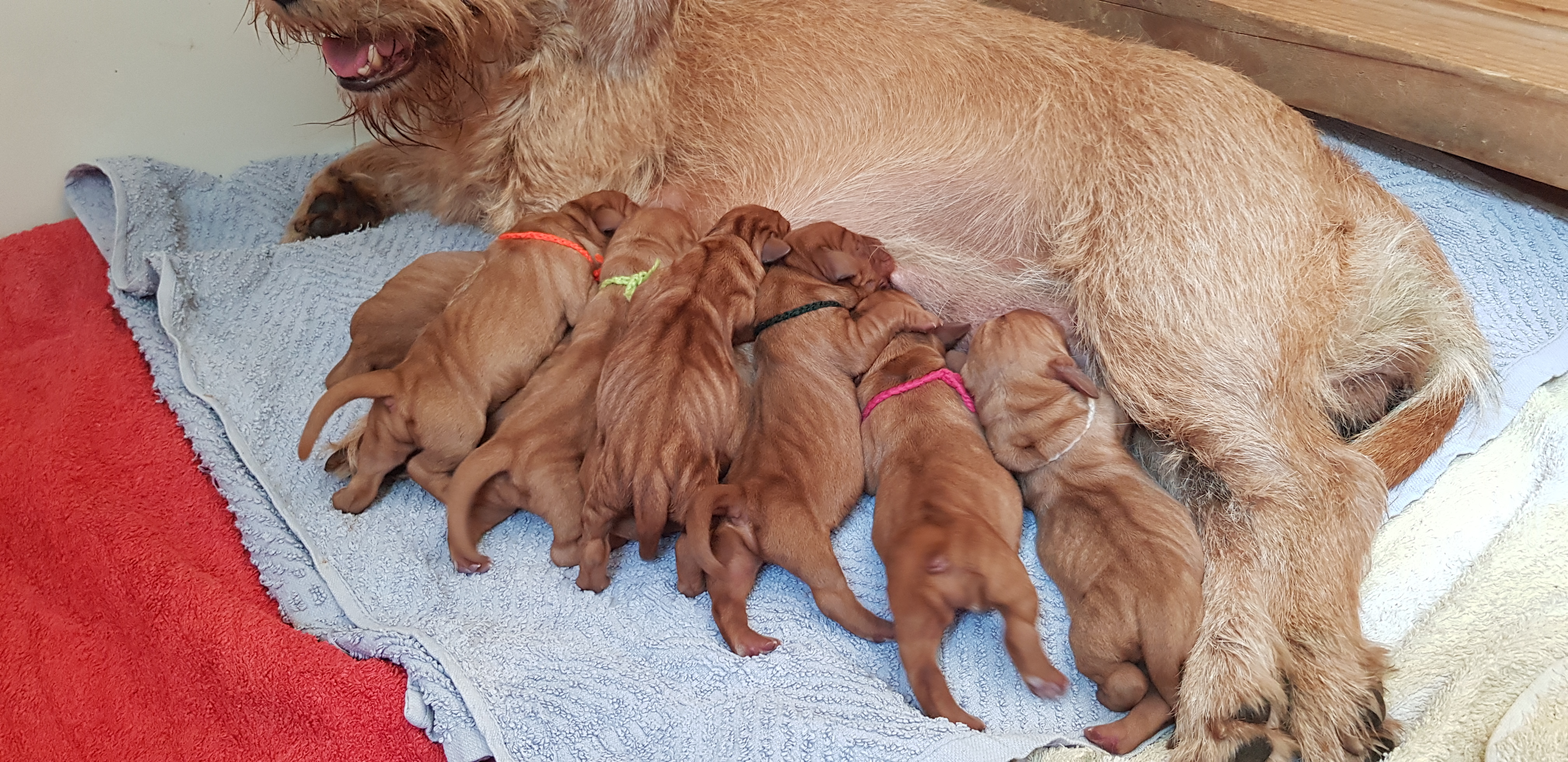 Die Welpen haben die ersten Tage brav getrunken und haben wirklich gut zugenommen! Eine brave Mama!