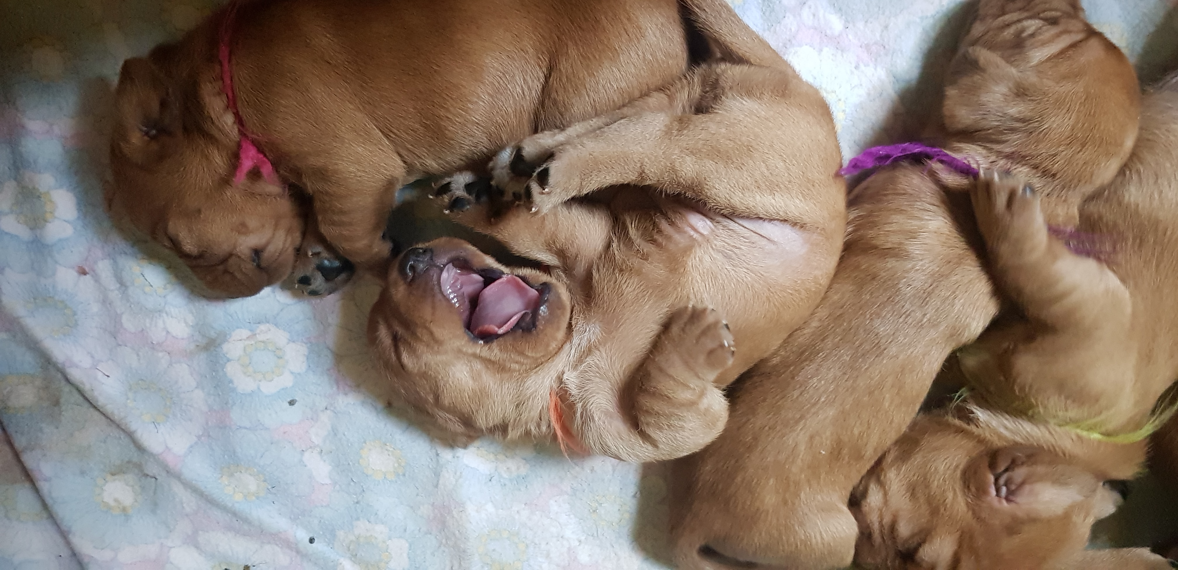 Noch dreht sich alles um Nahrungsaufnahme – fressen, schlafen, fressen, schlafen. Die Welpen werden aktiver und bewegen sich mehr. Die Mutter säugt schon nach ihrem Ermessen und nicht immer wenn ein Welpe mal schreit.