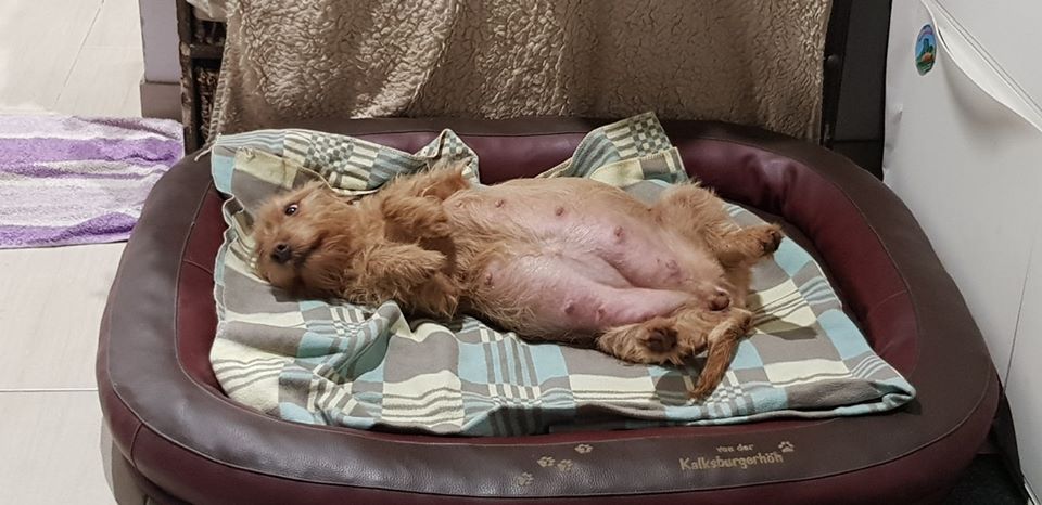 In 7 Würfen ist uns zum ersten Mal Leid dieser Art wiederfahren. Dennoch sind wir unendlich glücklich, dass der Rest – also Mutterhündin und vier Welpen – die Geburt unbeschadet überstanden hat!