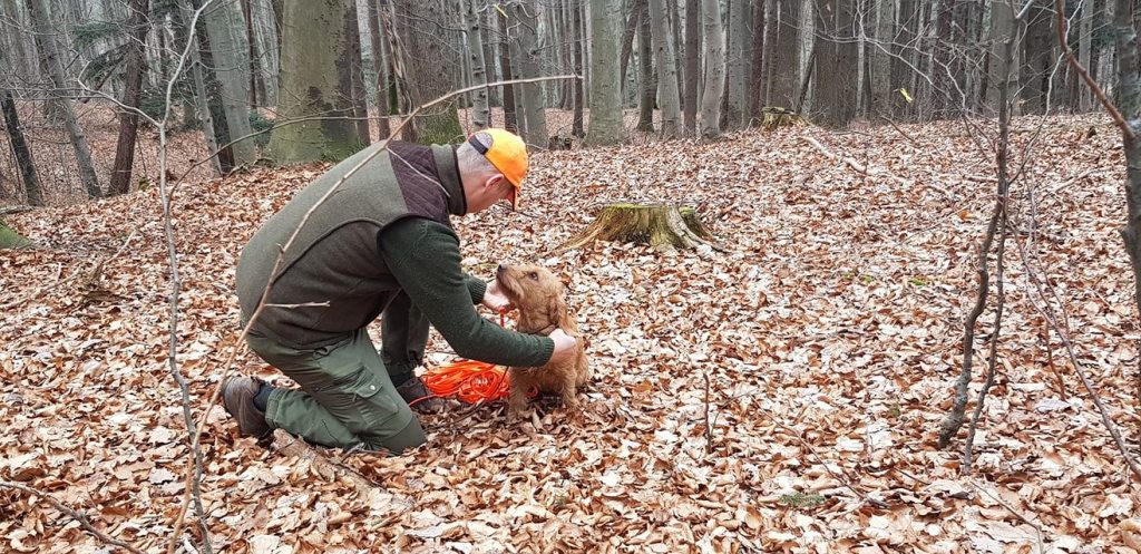 Ori fegte in gewohnt sicherer Arbeitsweise mit Markus durchs Unterholz zum Stück, ohne auch nur einmal links oder rechts zu schauen.