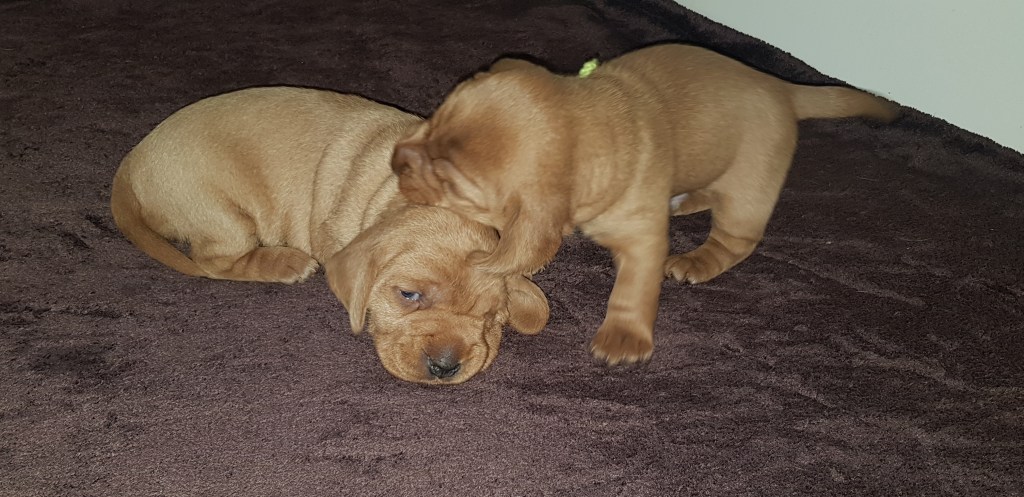 Am Anfang der Woche 3 begannen alle Welpen die Augen zu öffnen. Zuerst die Mädels und dann die Jungs. Bis dato haben alle Welpen rund einen Kilogramm. Mit dem Öffnen der Augen und Ohren begann auch die Mobilität aller zuzunehmen.