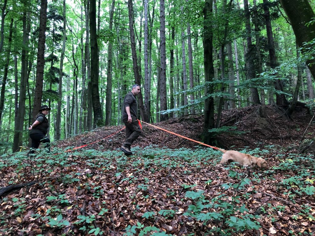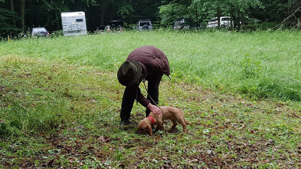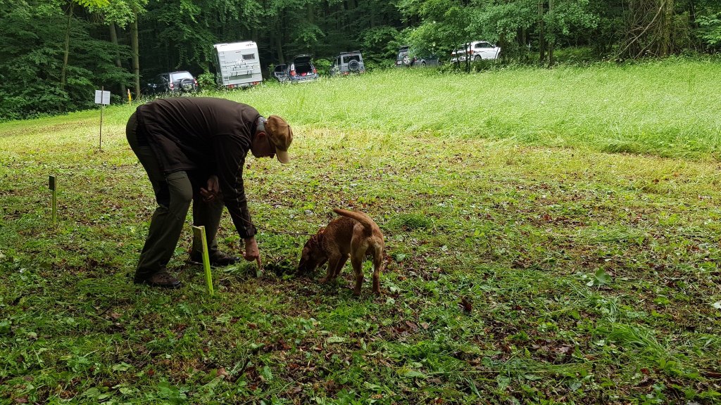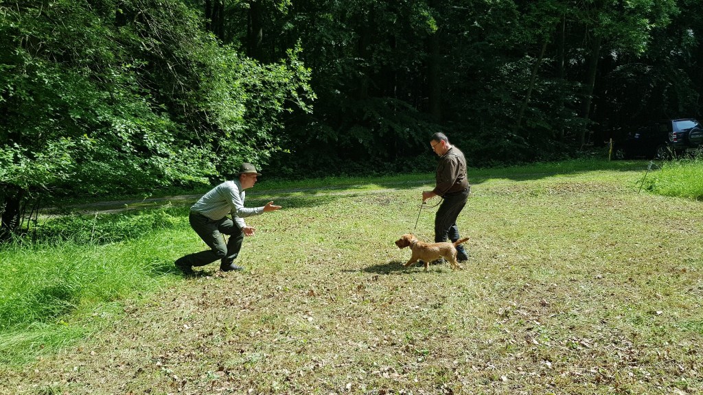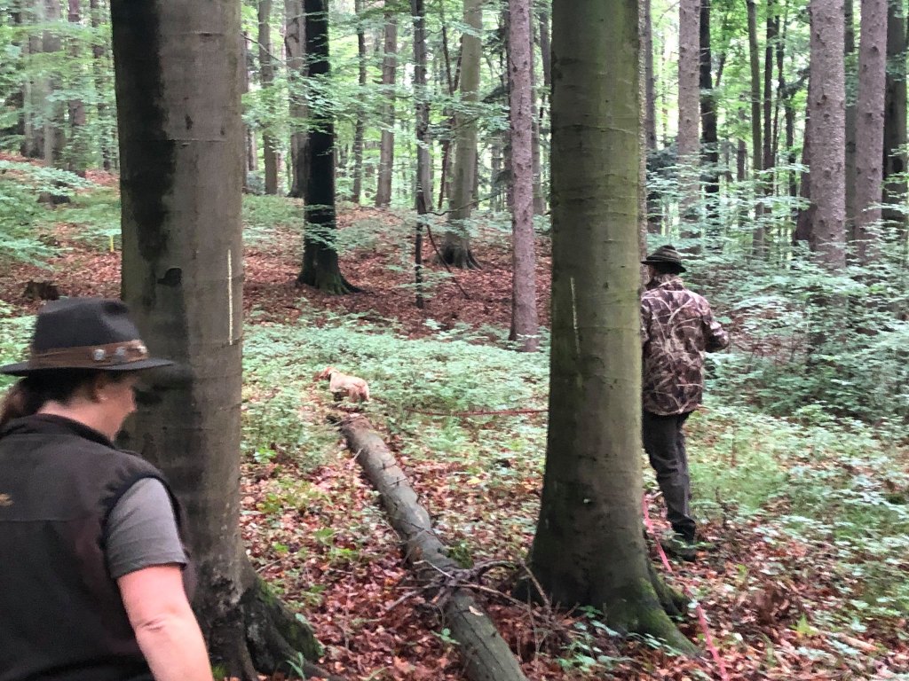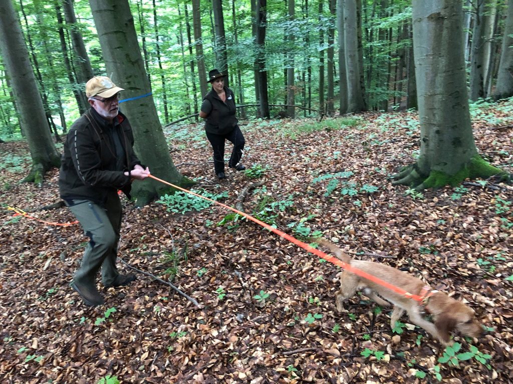 Wir haben Anschusstraining, Fährtentraining, Leinenführigkeit, Schussfestigkeit und Formwerttraining gemacht.