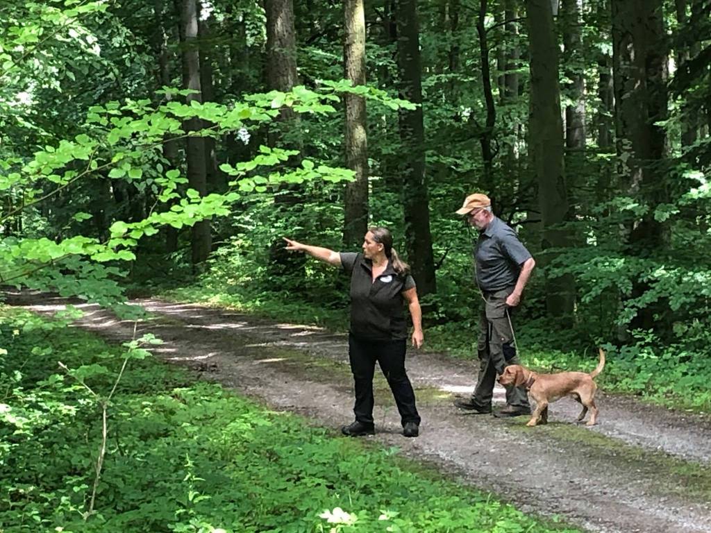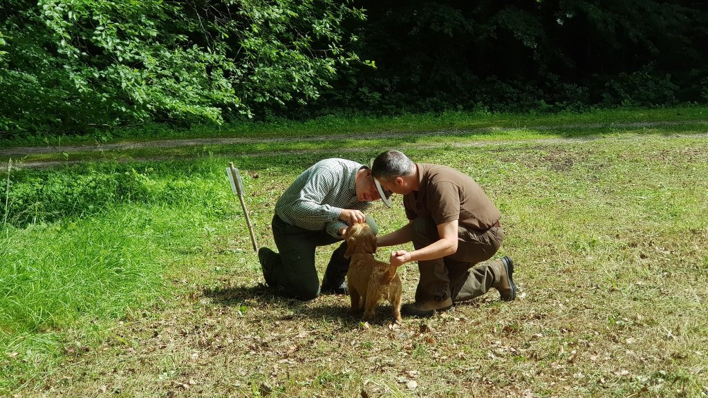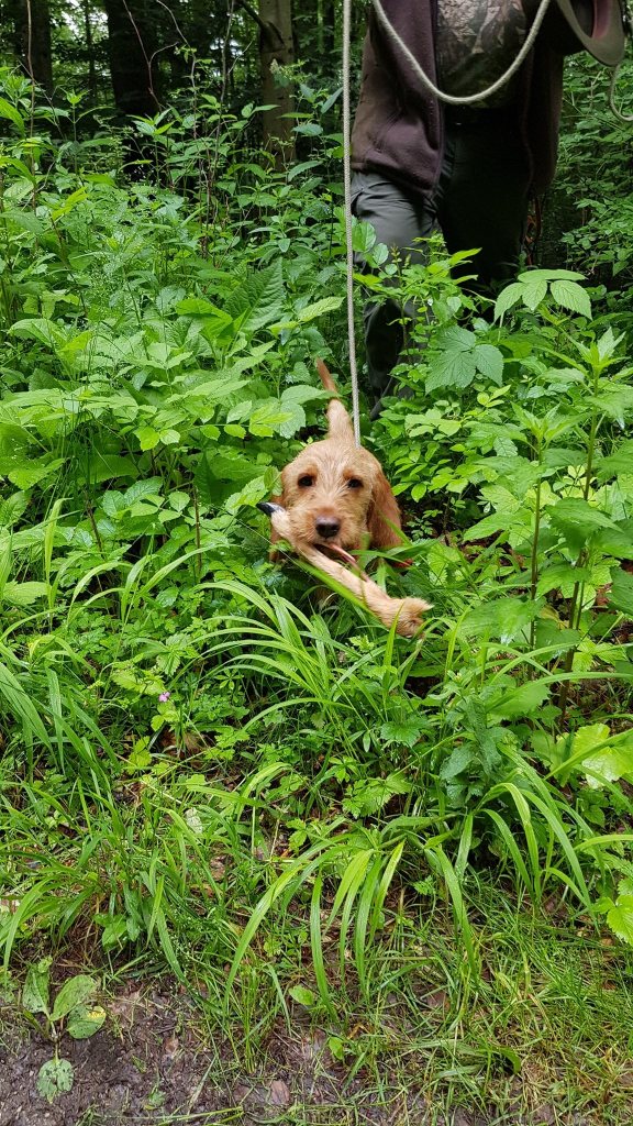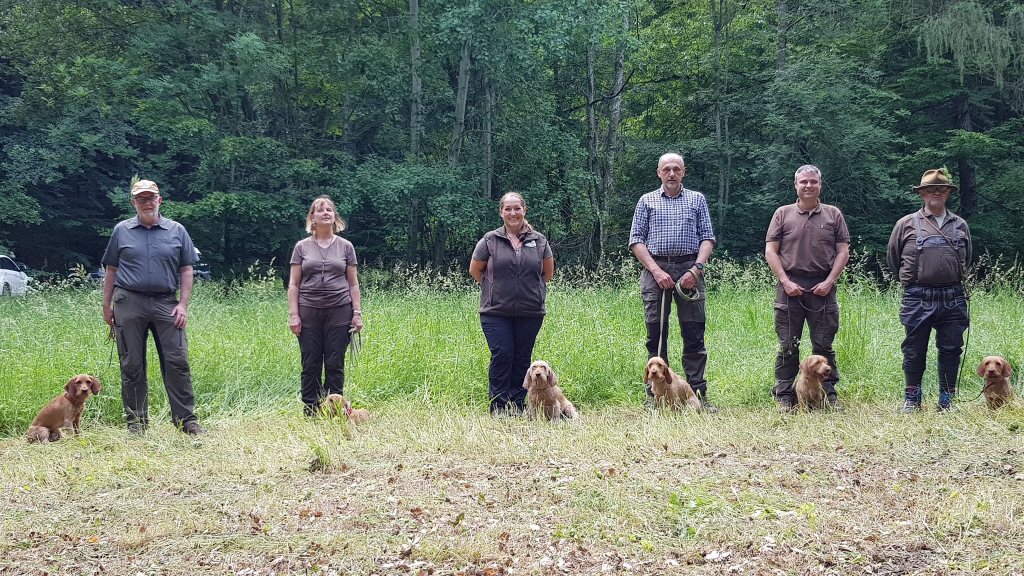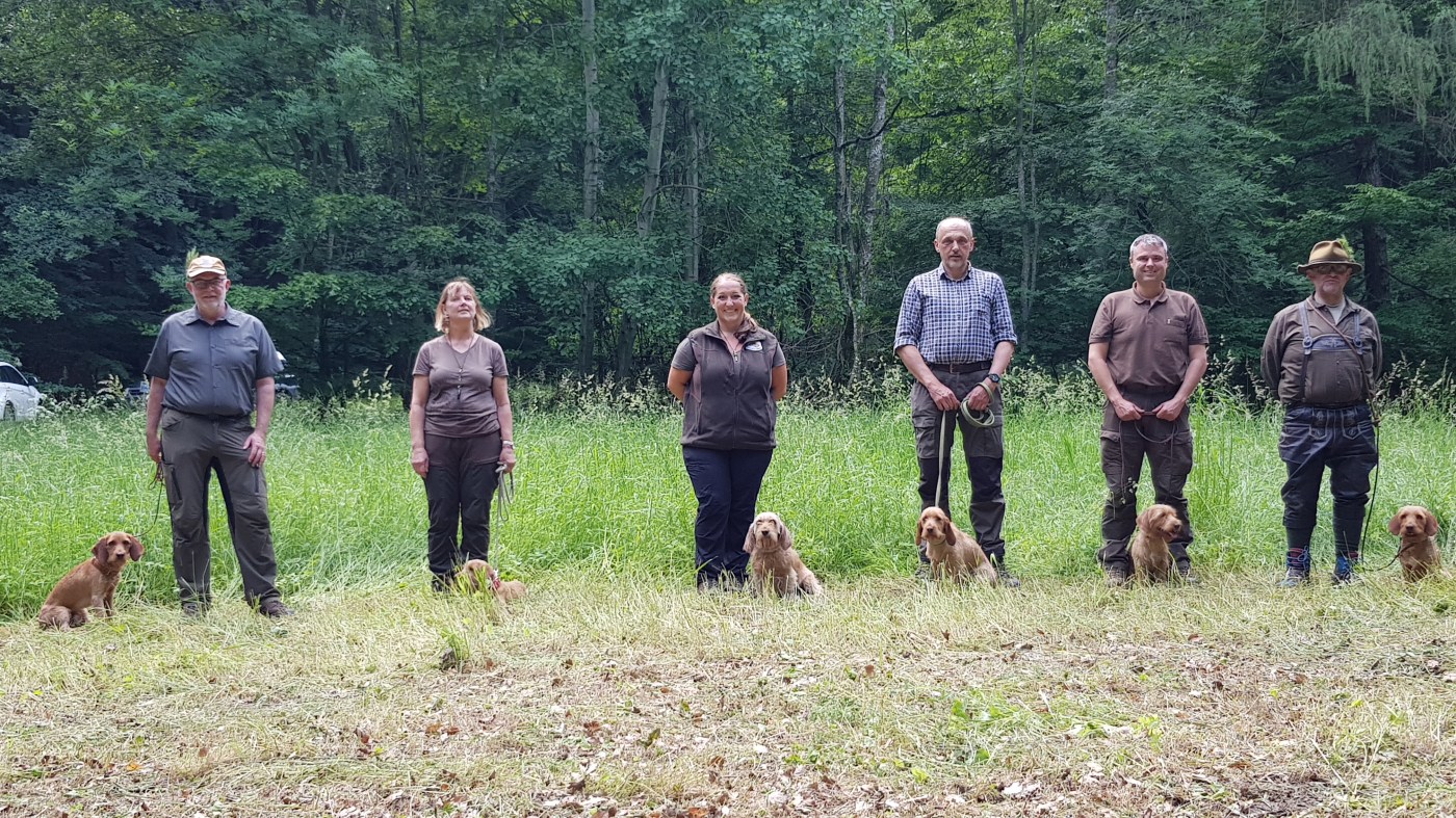 Wir haben Anschusstraining, Fährtentraining, Leinenführigkeit, Schussfestigkeit und Formwerttraining gemacht.