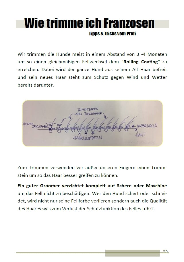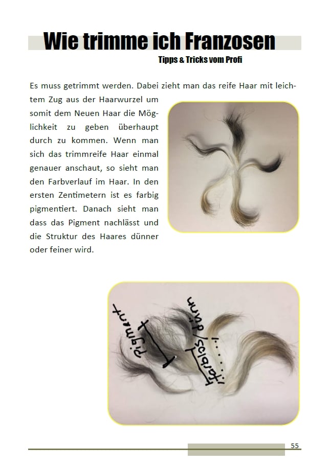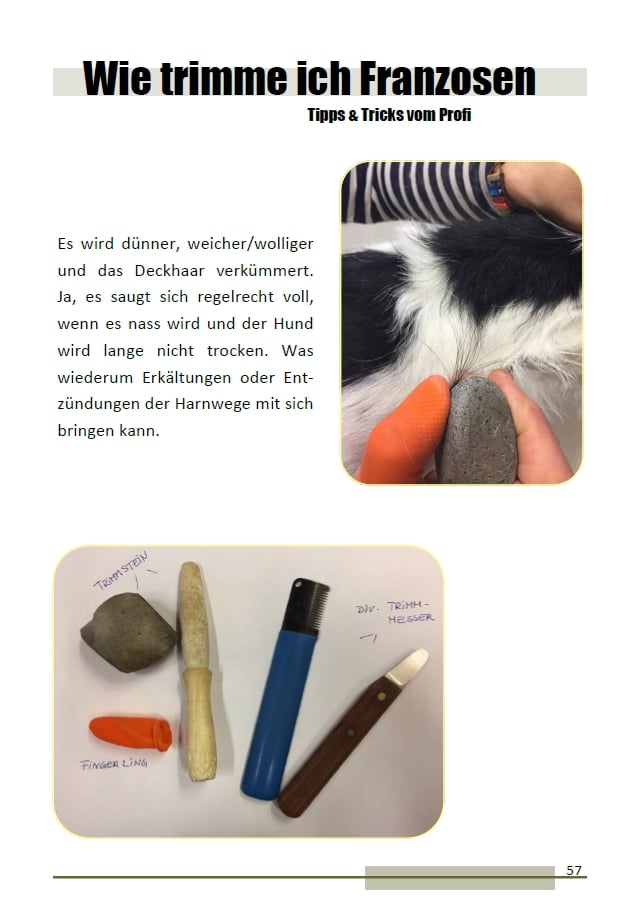 Wir bevorzugen das 𝕥𝕣𝕚𝕞𝕞𝕖𝕟 𝕞𝕚𝕥 𝕕𝕖𝕣 ℍ𝕒𝕟𝕕 mit Fingerling und Trimmmesser. Es gibt auch tolle Steine dafür. Von elektronischen Hilfsmittel oder Furminators raten wir persönlich ab! Bei der Fellpflege auch nicht Ohren und Läufe vergessen, spätestens in der Klettenzeit versteht man warum.