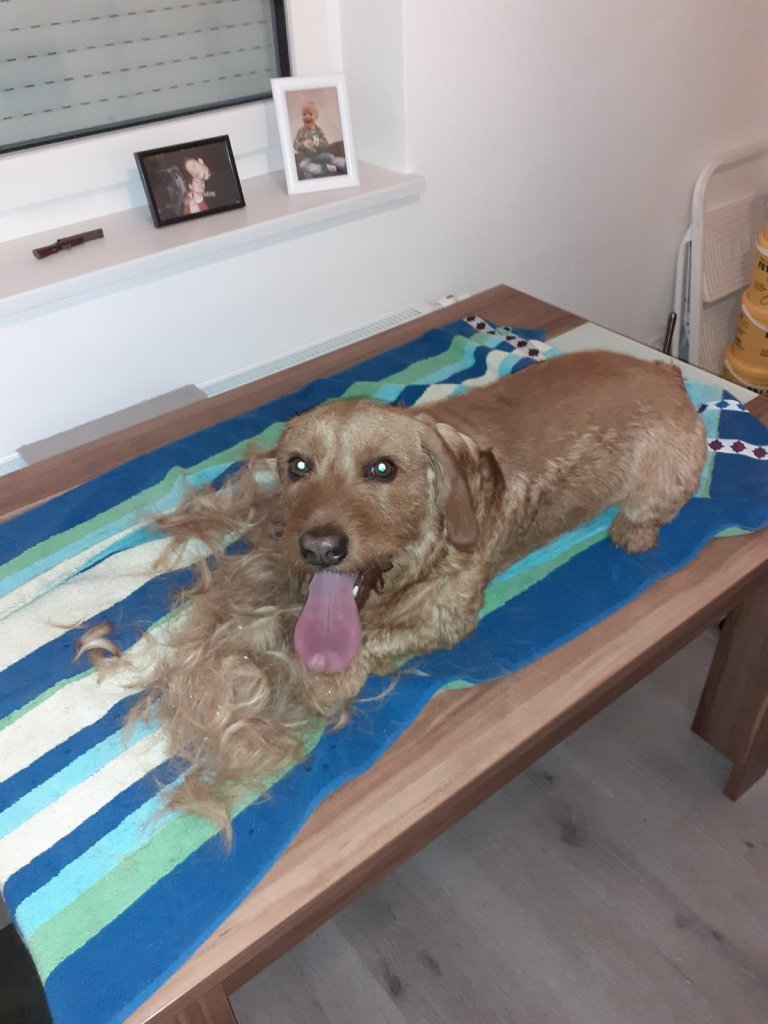 Einige Besitzer unserer Nachzucht Hunde sind schon fleißig am trimmen … Frühjahrsputz ![]()