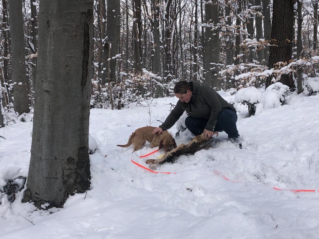 Nach langer Pause hat die junge Hündin überraschend konzentriert gearbeitet und sich leicht vom frischen „Naserl“ korrigieren lassen. Eine kurze aber gute Arbeit, mit Erfolg zum Stück. Suchenheil ![]()