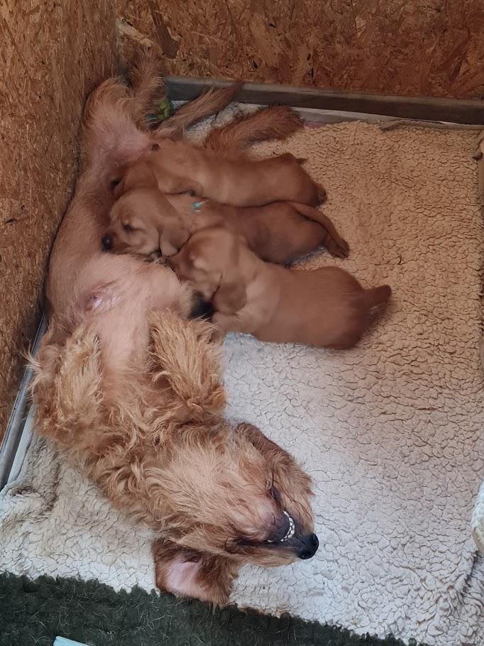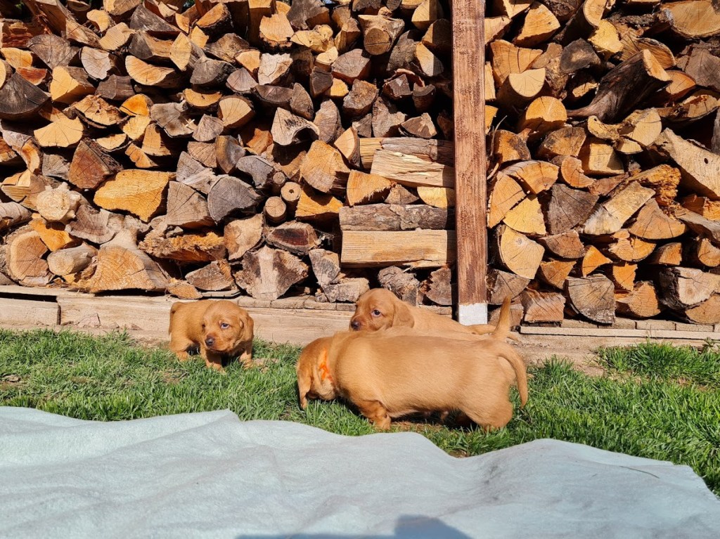 In Woche 4 macht auch die Entwicklung nicht halt, sie schreitet mit großen Schritten voran. Die Welpen sind immer öfter wach, geben volle Power. Es wird gespielt, geknurrt, gebellt, Kontakt zu uns und und untereinander aufgebaut. Auch Spielsachen werden schon beachtet und verwendet.