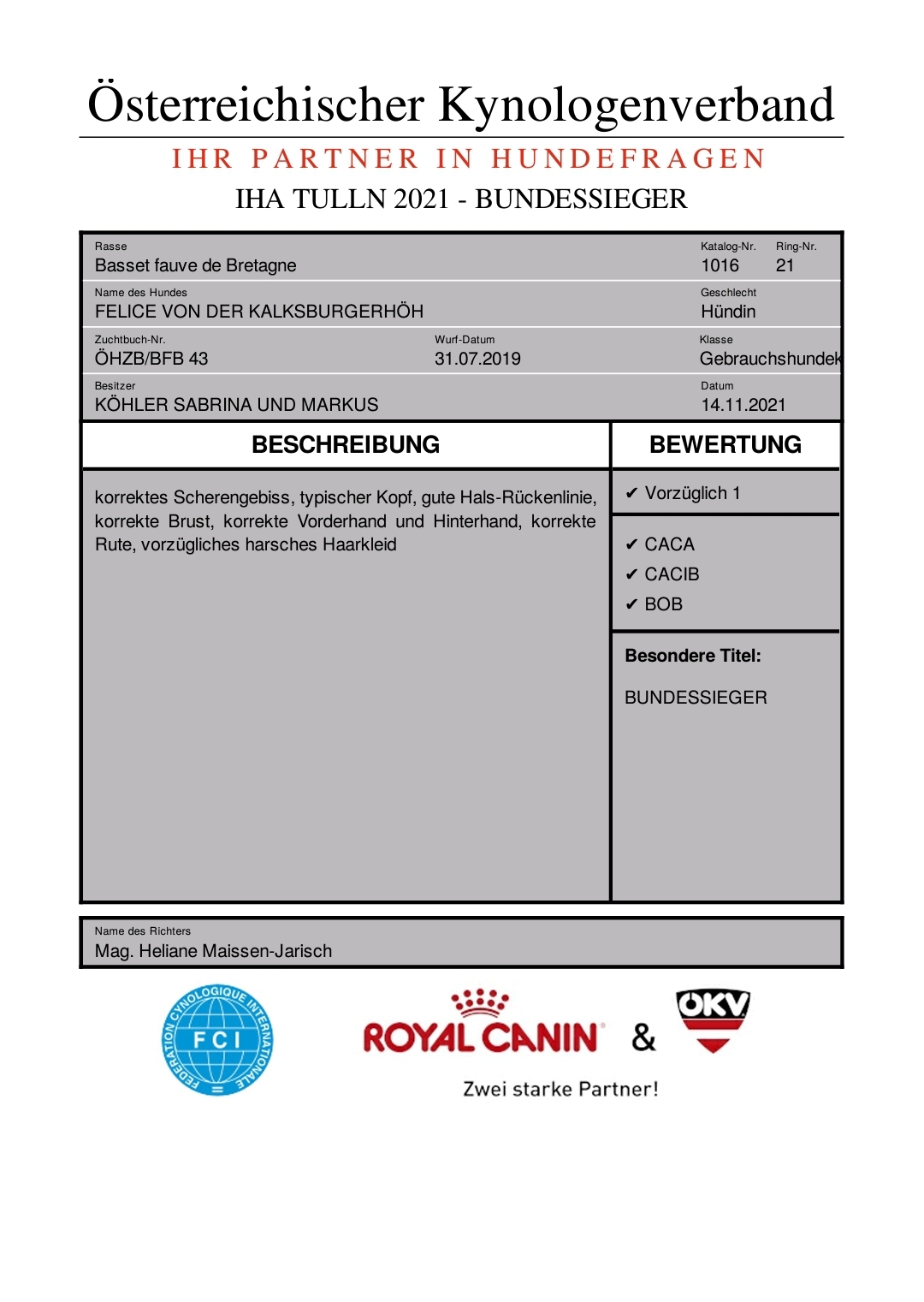 Nachtrag 3 X CACIB TULLN – DU & DAS TIER 2021: