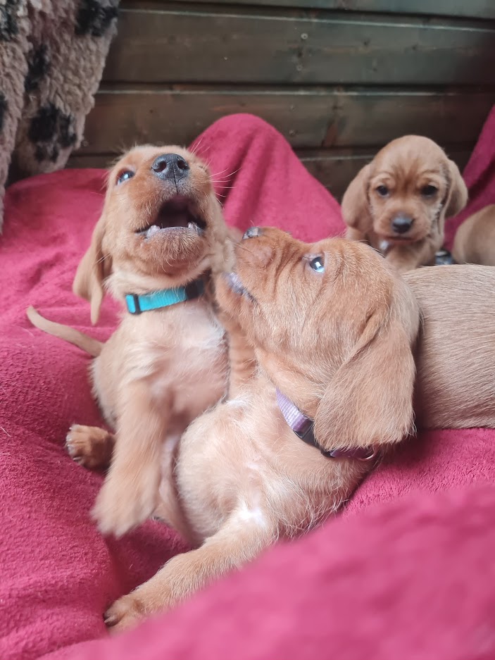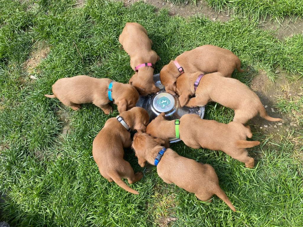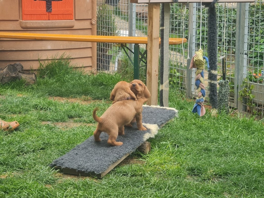 Die kleinen Kämpfe werden größer und manchmal auch ernster, Rangordnung wird ausgekämpft. Die Weiber sind die Chefinnen … dann kommen die Rüden 😉 Charakterzüge prägen sich aus und man kann die kleinen Persönchen schon gut beschreiben.