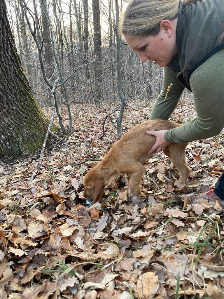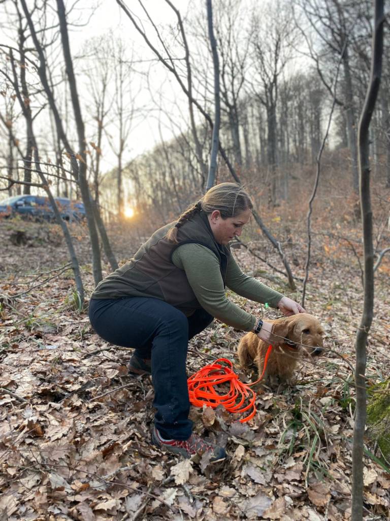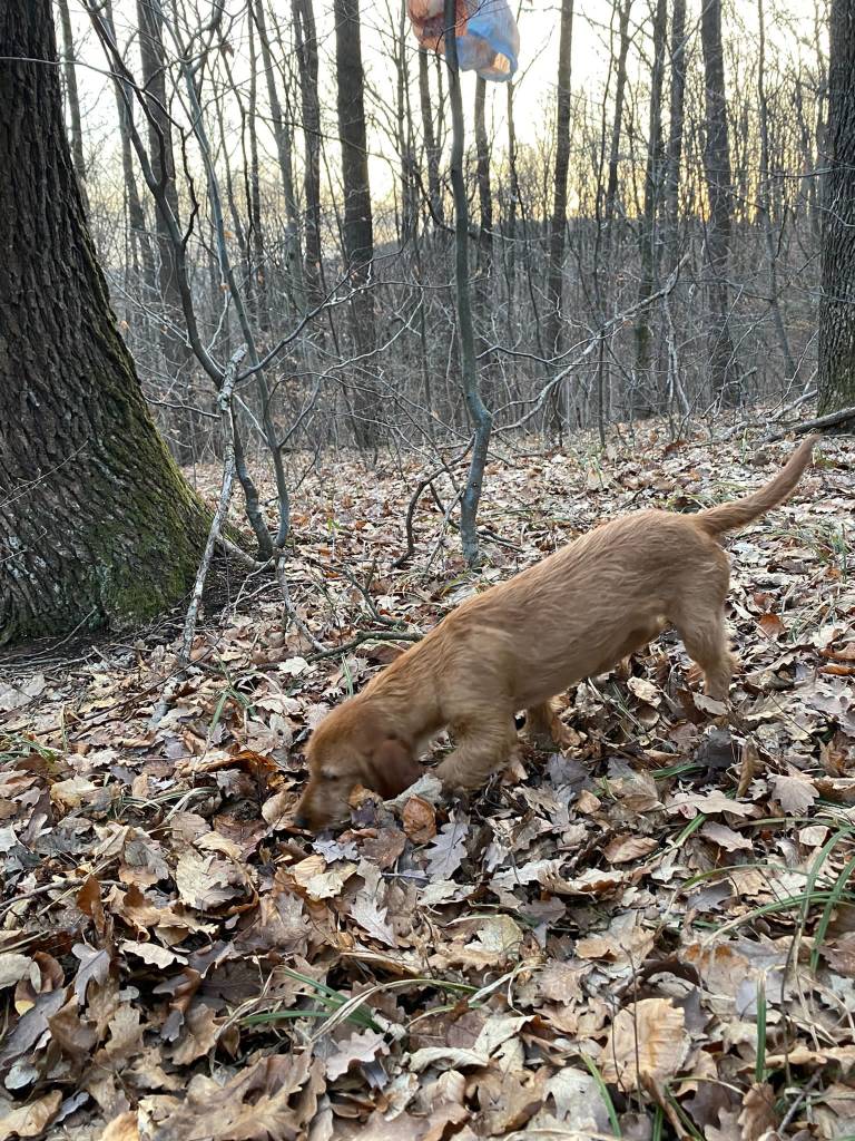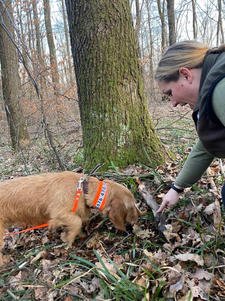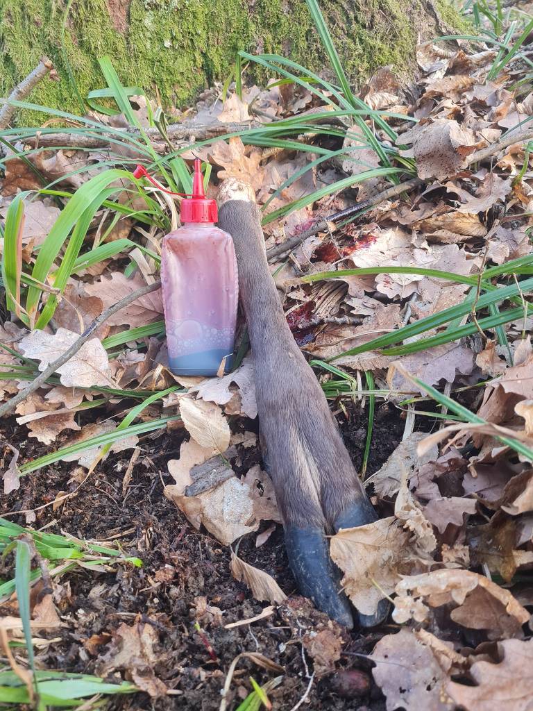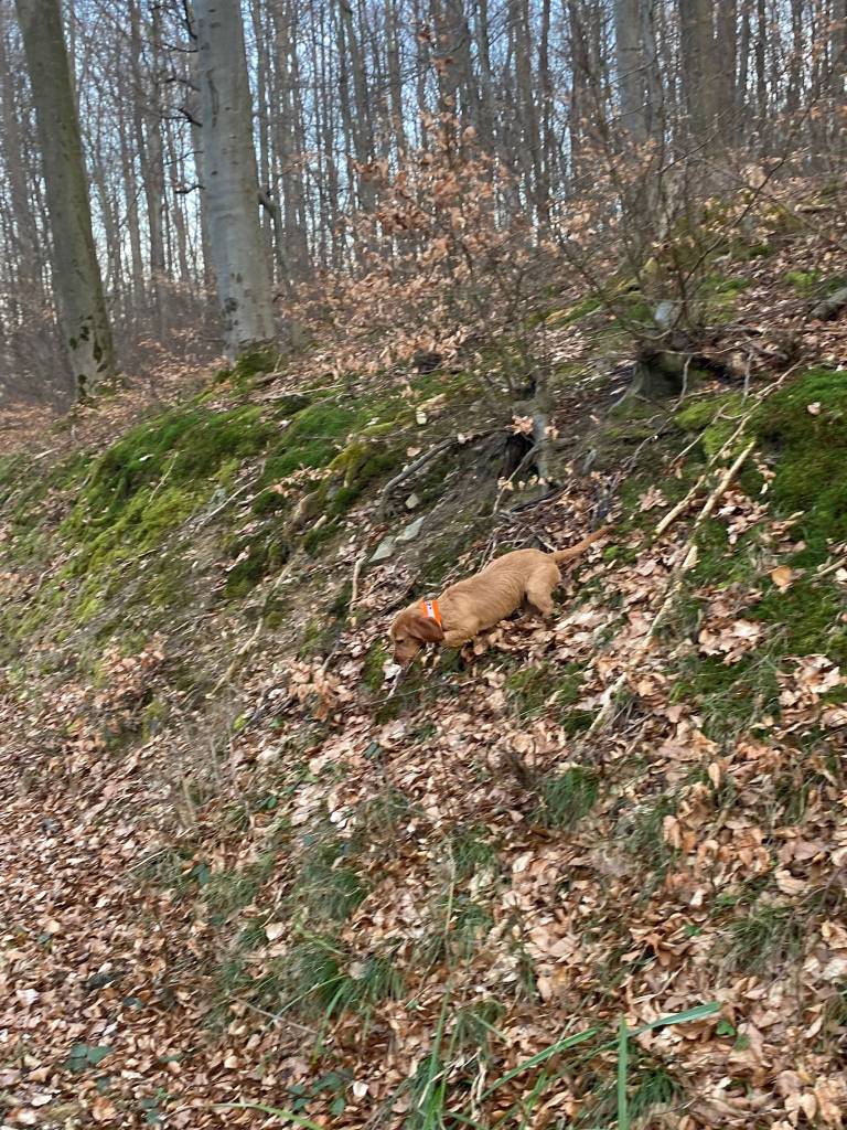 Schweißfährte mit Oriane de la Fontaine Du Baconnet … künstlich, kurze Stehzeit, 300 Schritte, nach längerer Fährtenpause, lief das dennoch wie am Schnürchen trotz kurz vorher abgesprungener Rehe an der Fährte… und das nächste Mal gibts gleich eine Übernacht Fährte.