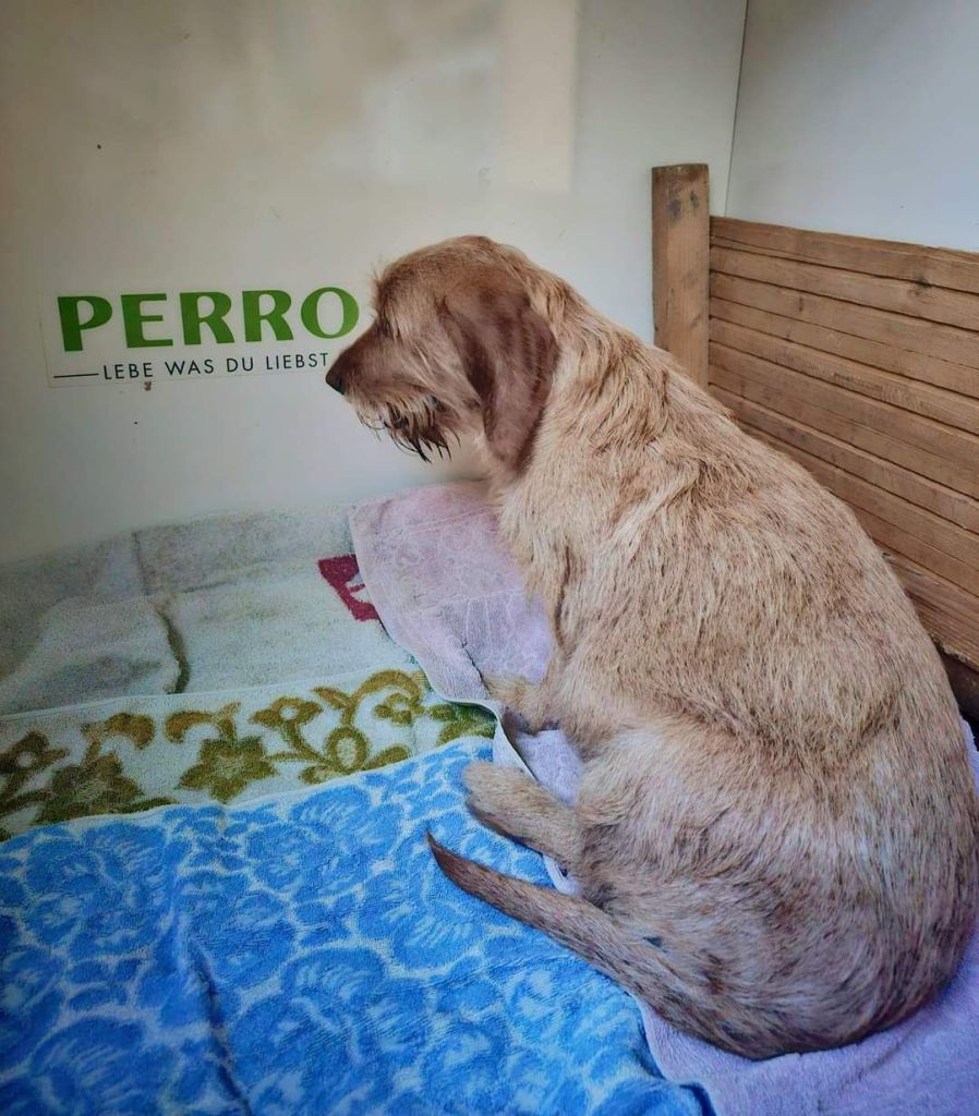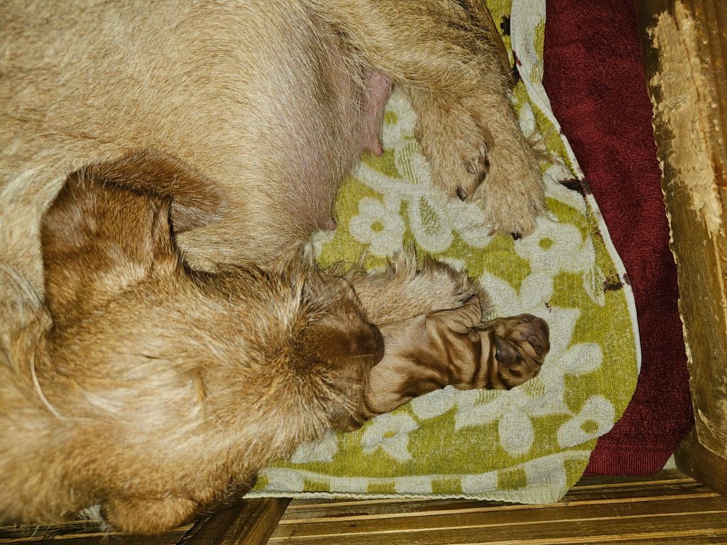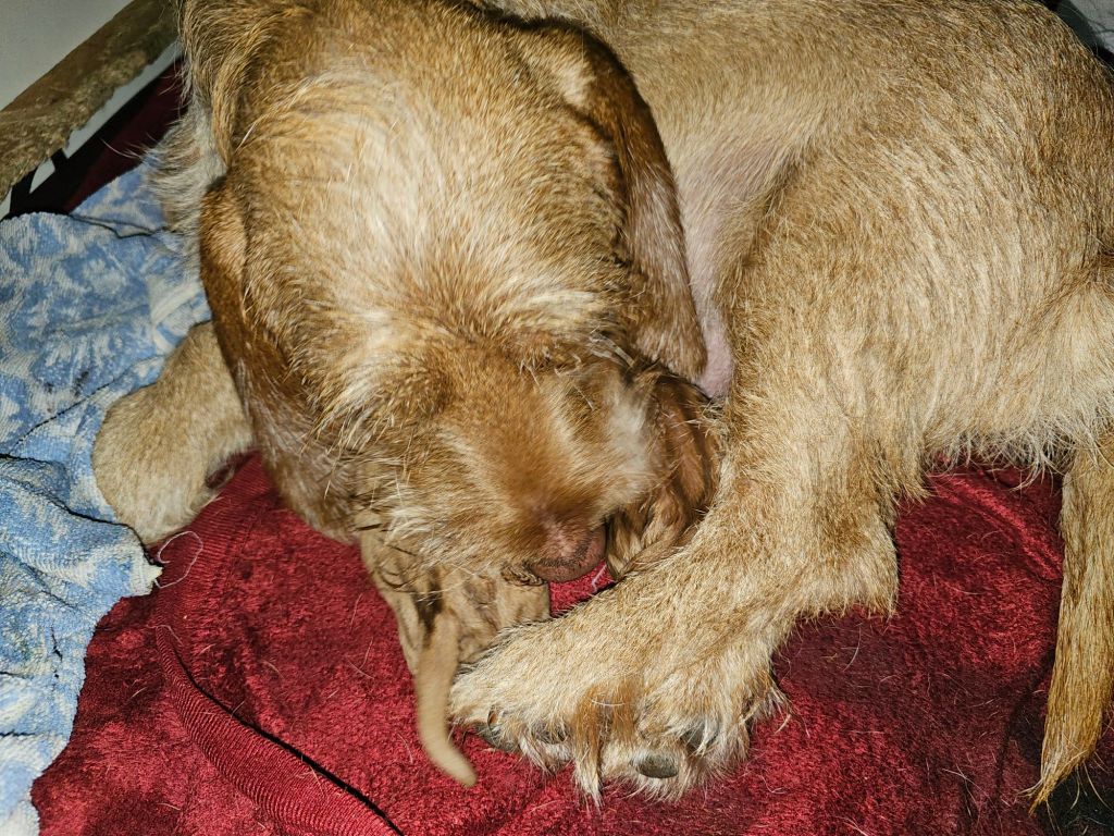 Nachdem die Hündin am 25.1.24 ca. 16.00 Uhr die Geburt eingeleitet hat war es erstmal eine lange Nacht. Die Hündin streifte unruhig zwischen Garten und Wurfbox hin und her und machte kein Auge zu.