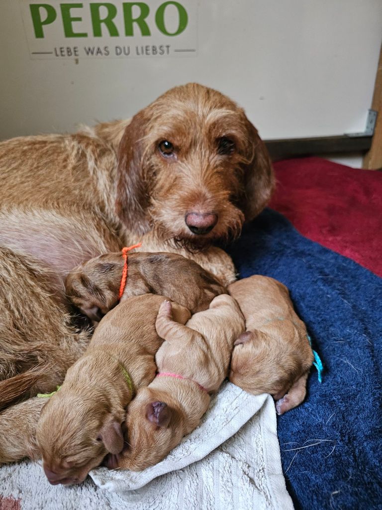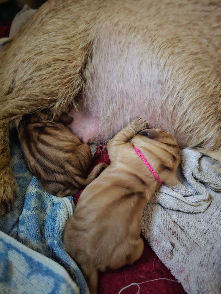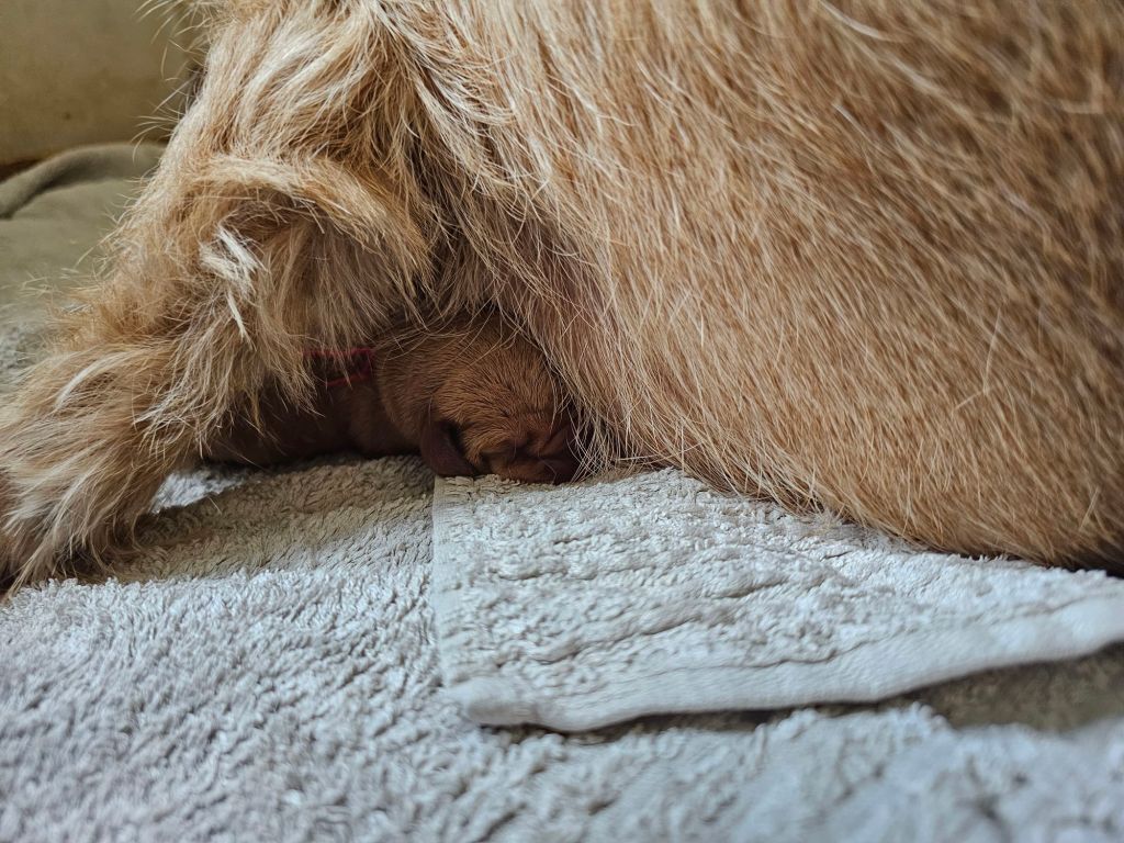 Um 5.45 schlussendlich begannen die Bauchpressen und der erste Welpe machte sich auf den Weg. 34 Stunden später wölfte sie dann den letzten Welpen.