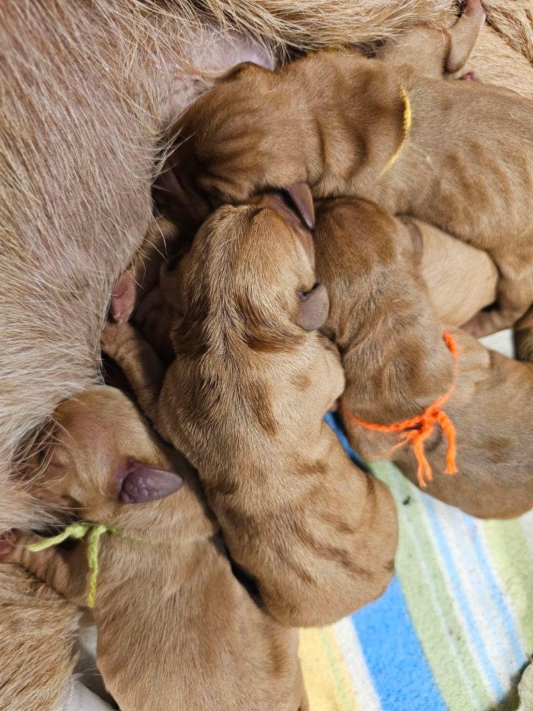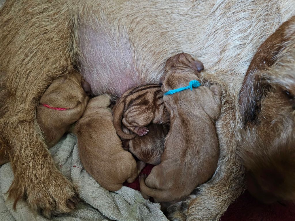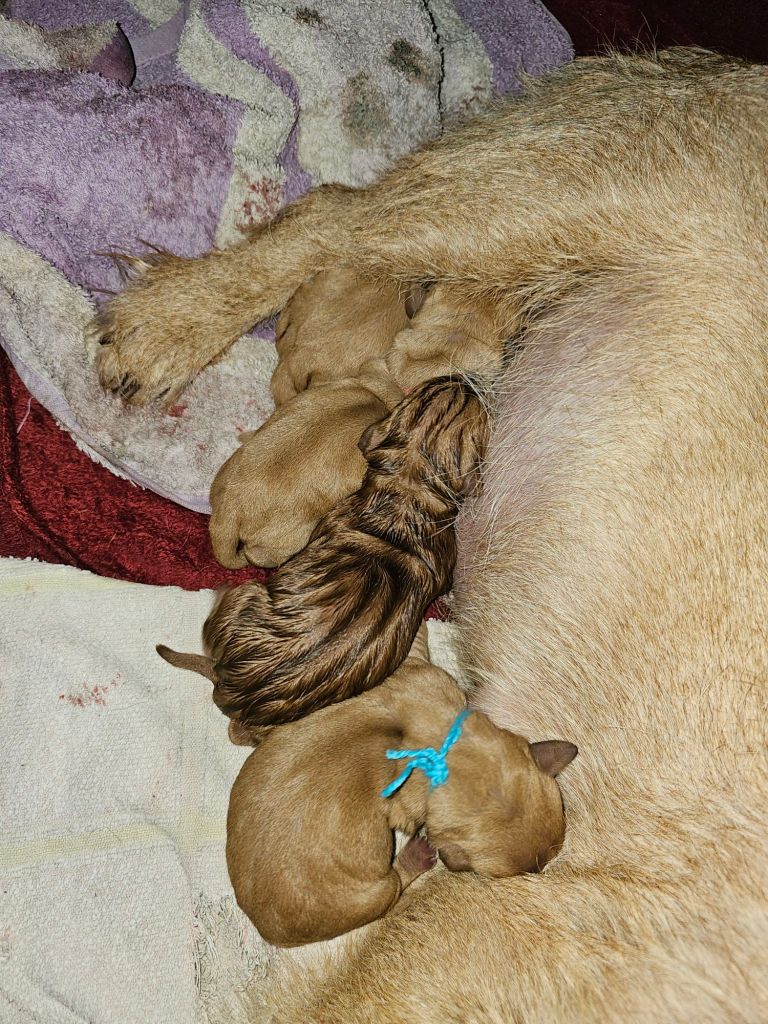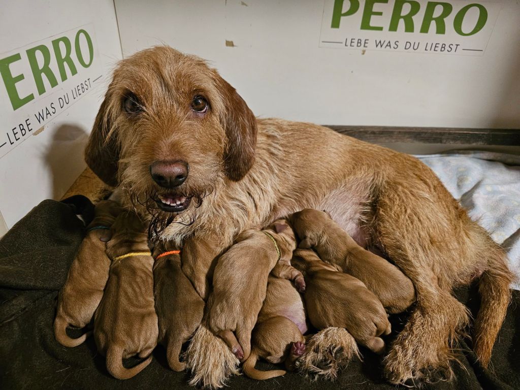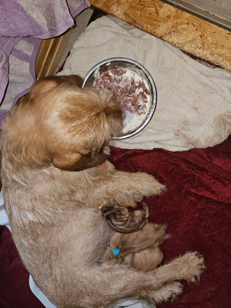 Am 26.1.2024 wölfte Felice von der Kalksburgerhöh nach dem Rüden Ouragan de la Carriere de Thil 8 Welpen (5 Rü/3 Hü).