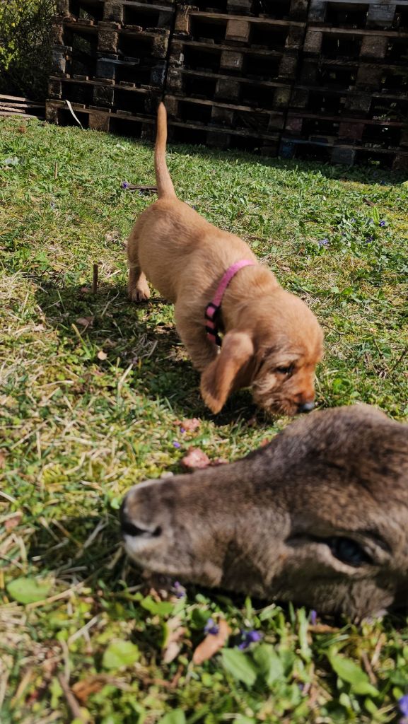 Heute haben wir endlich wetterbedingt unsere Futterschleppen machen können. Die Konzentration ist noch nicht so vorhanden und der Zweck der Übung noch nicht ganz so klar, aber wir hatten Spaß und konnten sehen wie die Hunde ihre Nase einsetzten.