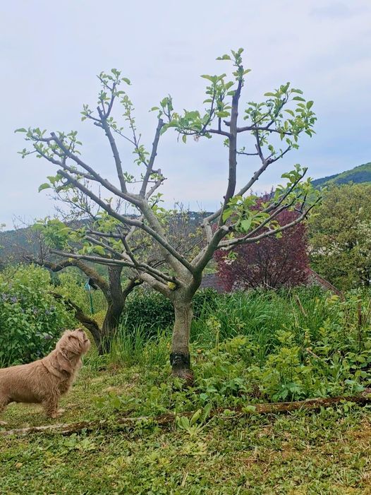 Claire #vonderkalksburgerhöh hier am Apfelbäumchen beim sauberen Anzeigen, … am Weg nach oben. Nächster Stopp Marillenbaum, da ist die Gabelung schon höher. #wirsindgespannt