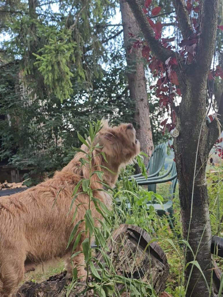 Claire zeigt brav an, probiert aber zu viel aus und sucht zu wenig vor dem Anzeigen. Aber das werden wir auch noch hin bekommen. Der Weg zum #borkenkäferspürhund ist halt kein Spaziergang mit zu wenig Zeit.