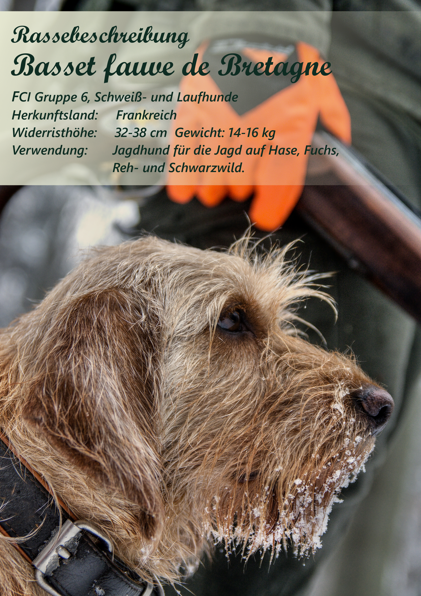 Laufhund für die Jagd auf Kaninchen, Hase, Fuchs, Rehwild und Schwarzwild.